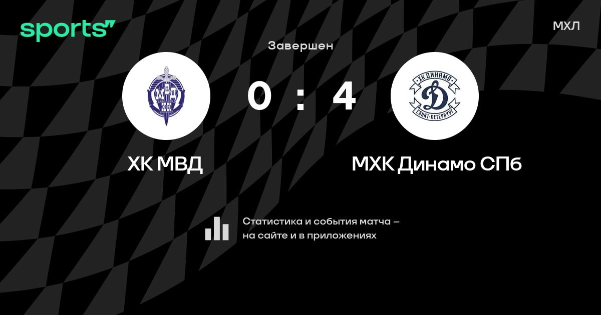 В прошедшем матче в рамках турнира МХЛ состоялась встреча команд ХК МВД - МХК Динамо СПб со счетом 0 : 4.
