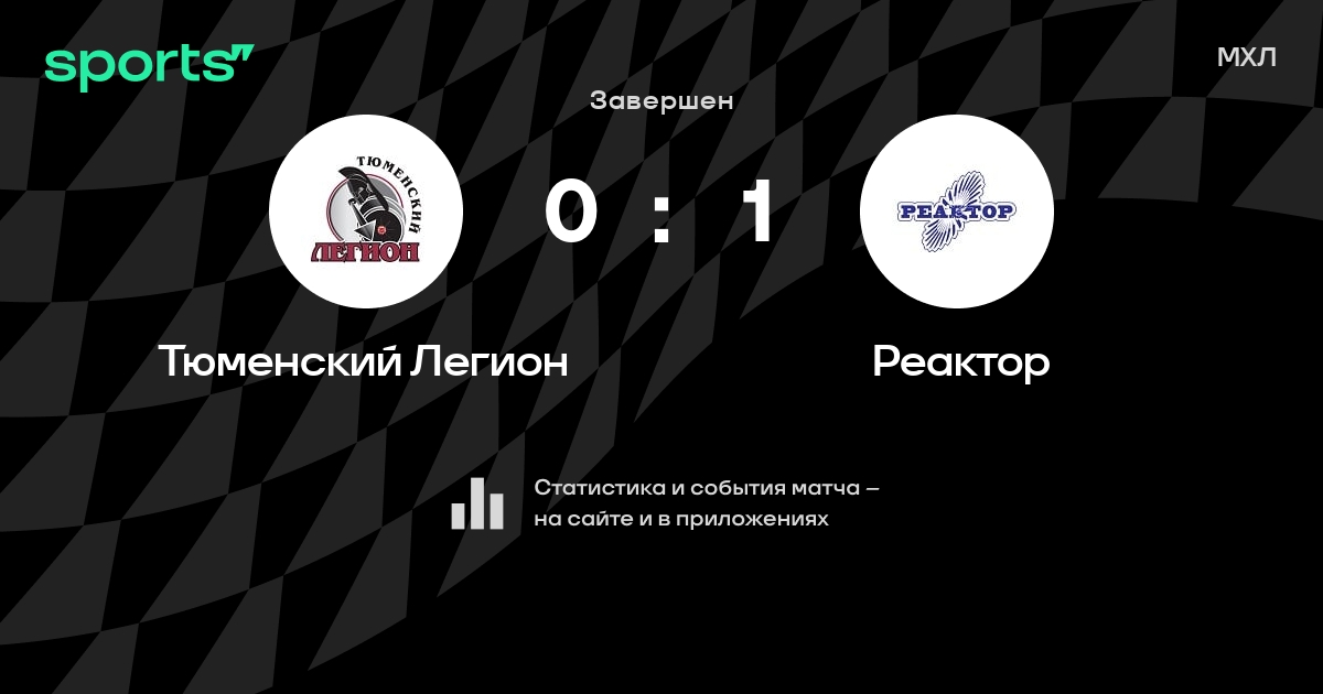 В прошедшем матче в рамках турнира МХЛ состоялась встреча команд Тюменский Легион - Реактор со счетом 0 : 1.