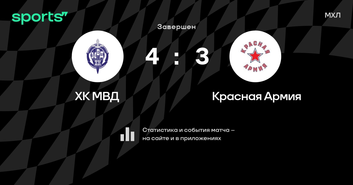 В прошедшем матче в рамках турнира МХЛ состоялась встреча команд ХК МВД - Красная Армия со счетом 4 : 3.