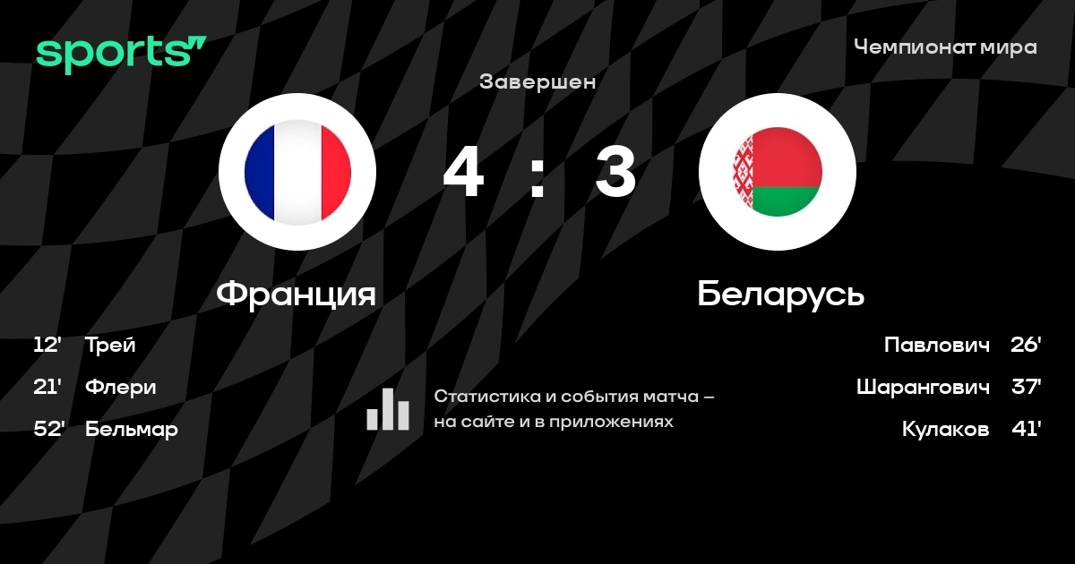 19:30 по броскам в пользу Франции по итогам 60 минут игры, кстати. Овертайм начнется в формате 4 на 3. Потому что Беларусь в большинстве.