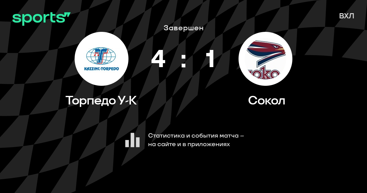 В прошедшем матче в рамках турнира ВХЛ состоялась встреча команд Торпедо У-К - Сокол со счетом 4 : 1.