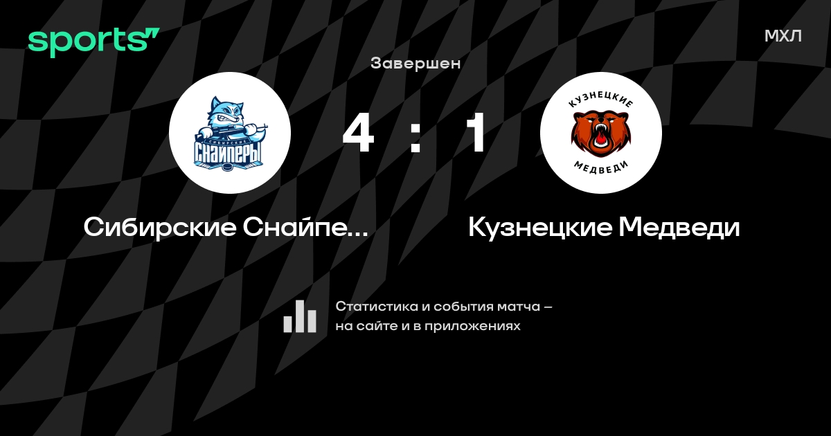 В прошедшем матче в рамках турнира МХЛ состоялась встреча команд Сибирские Снайперы - Кузнецкие Медведи со счетом 4 : 1.