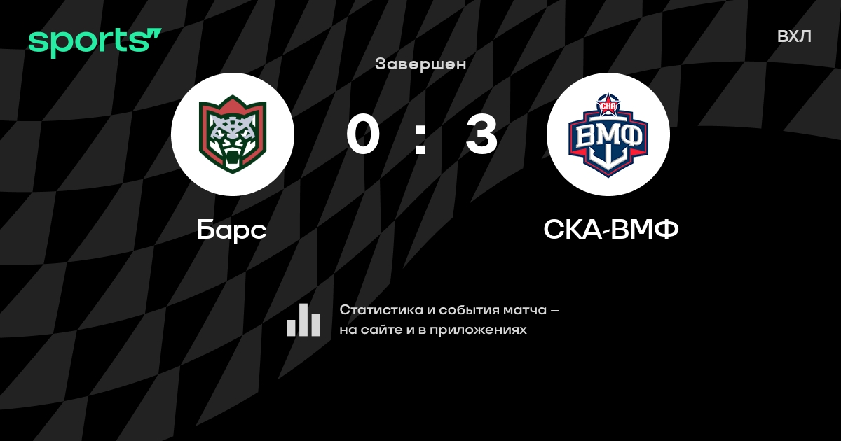В прошедшем матче в рамках турнира ВХЛ состоялась встреча команд Барс - СКА-ВМФ со счетом 0 : 3.