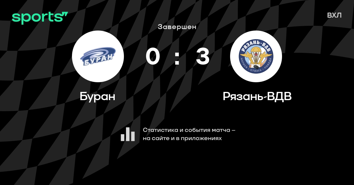 В прошедшем матче в рамках турнира ВХЛ состоялась встреча команд Буран - Рязань-ВДВ со счетом 0 : 3.