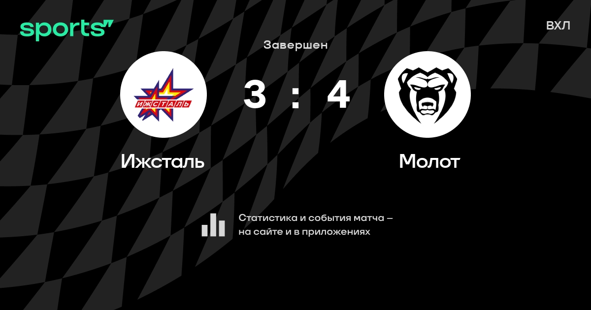 В прошедшем матче в рамках турнира ВХЛ состоялась встреча команд Ижсталь - Молот со счетом 3 : 4.