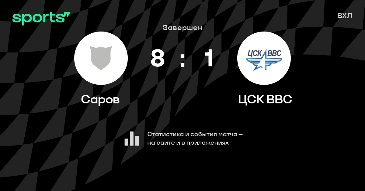 В прошедшем матче в рамках турнира ВХЛ состоялась встреча команд Саров - ЦСК ВВС со счетом 8 : 1.