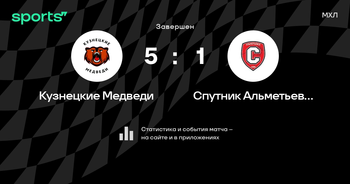 В прошедшем матче в рамках турнира МХЛ состоялась встреча команд Кузнецкие Медведи - Спутник Альметьевск со счетом 5 : 1.