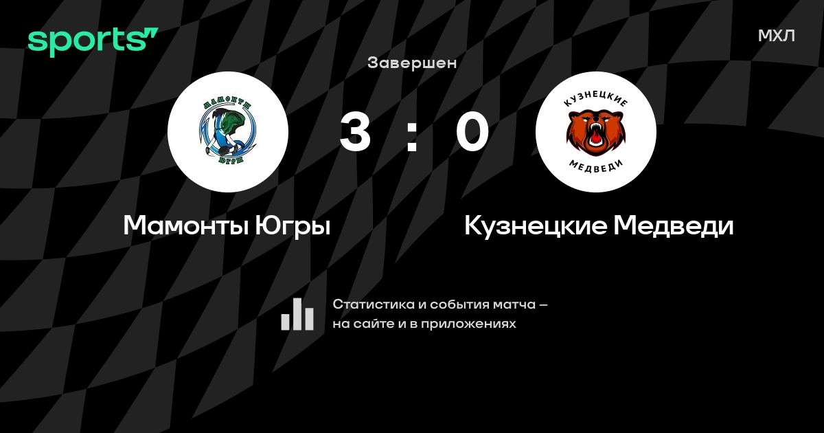 В прошедшем матче в рамках турнира МХЛ состоялась встреча команд Мамонты Югры - Кузнецкие Медведи со счетом 3 : 0.