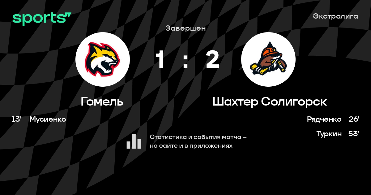 В прошедшем матче в рамках турнира Экстралига состоялась встреча команд Гомель - Шахтер Солигорск в городе Гомель (Беларусь) на стадионе Ледовый дворец Гомель (вместимость - 2700)