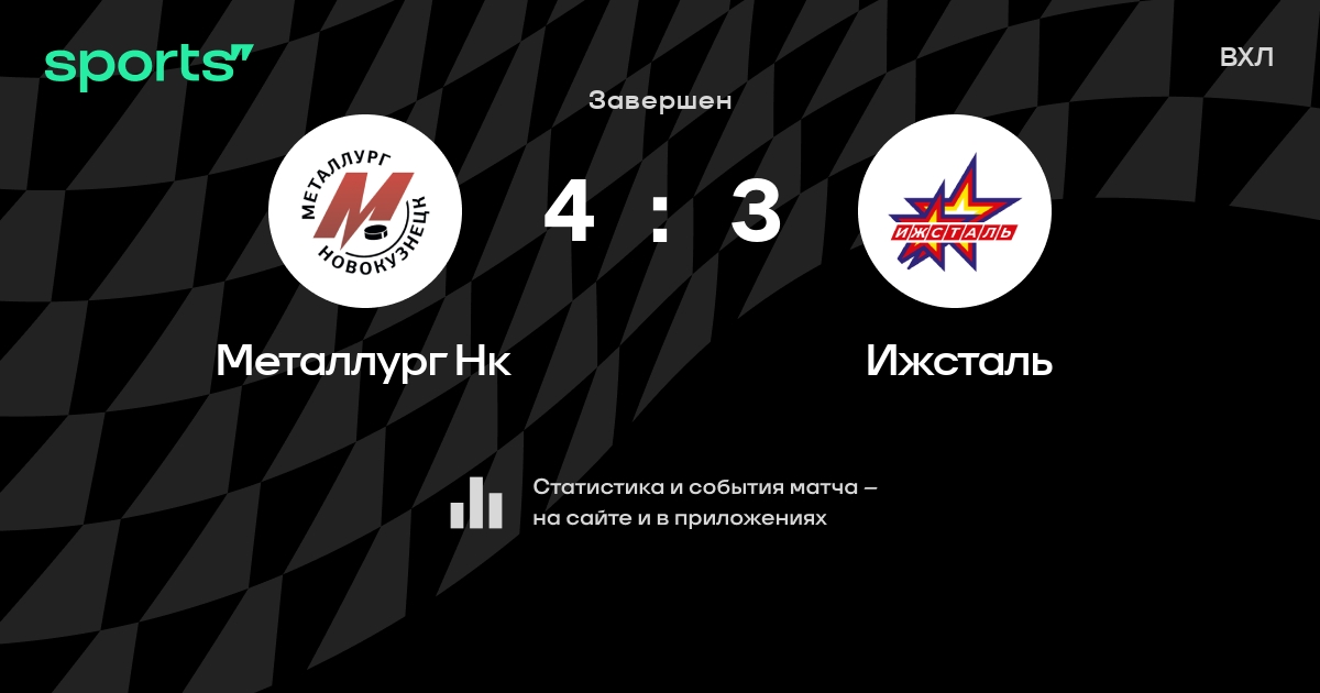 В прошедшем матче в рамках турнира ВХЛ состоялась встреча команд Металлург Нк - Ижсталь со счетом 4 : 3.