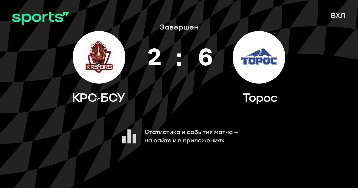 В прошедшем матче в рамках турнира ВХЛ состоялась встреча команд КРС-БСУ - Торос со счетом 2 : 6.