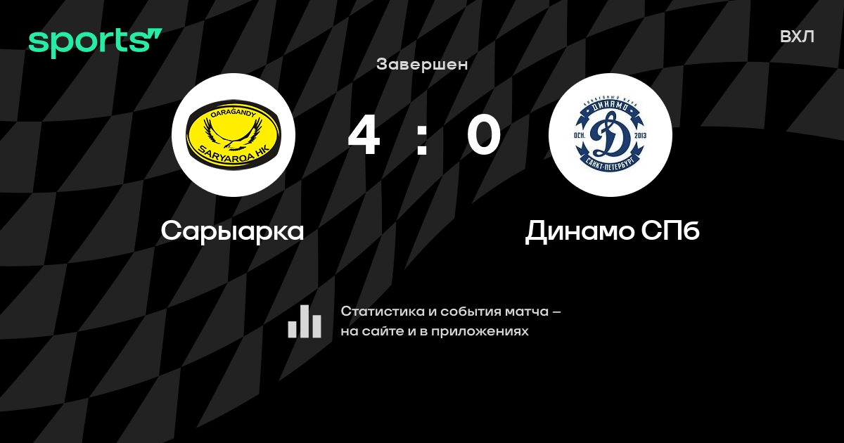 В прошедшем матче в рамках турнира ВХЛ состоялась встреча команд Сарыарка - Динамо СПб со счетом 4 : 0.