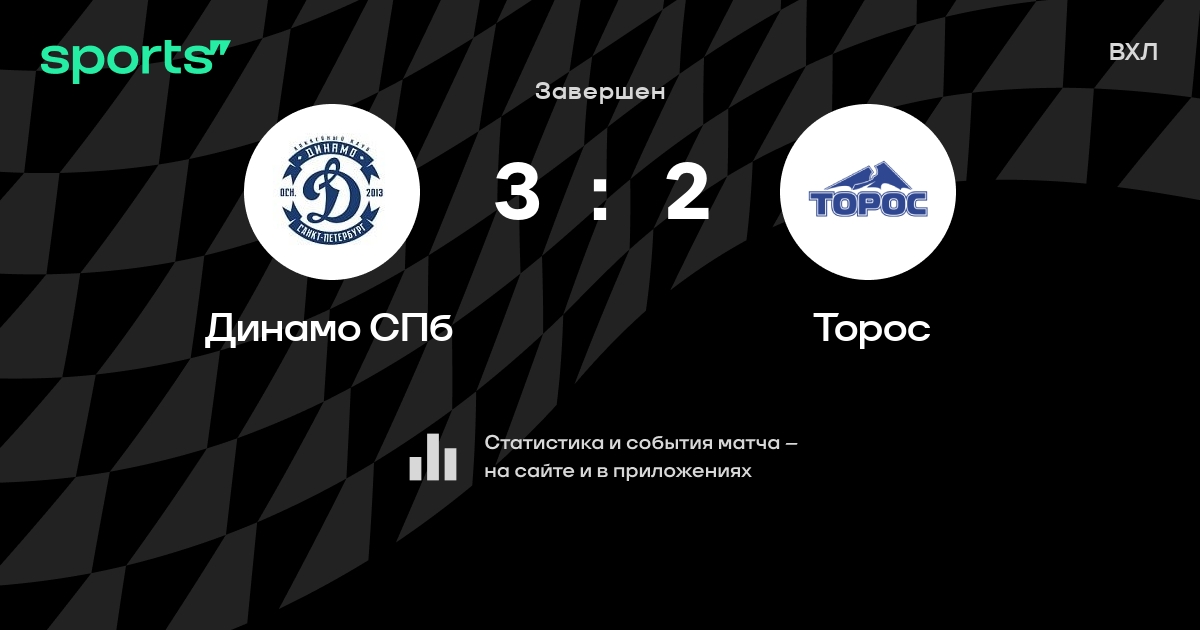 В прошедшем матче в рамках турнира ВХЛ состоялась встреча команд Динамо СПб - Торос со счетом 3 : 2.