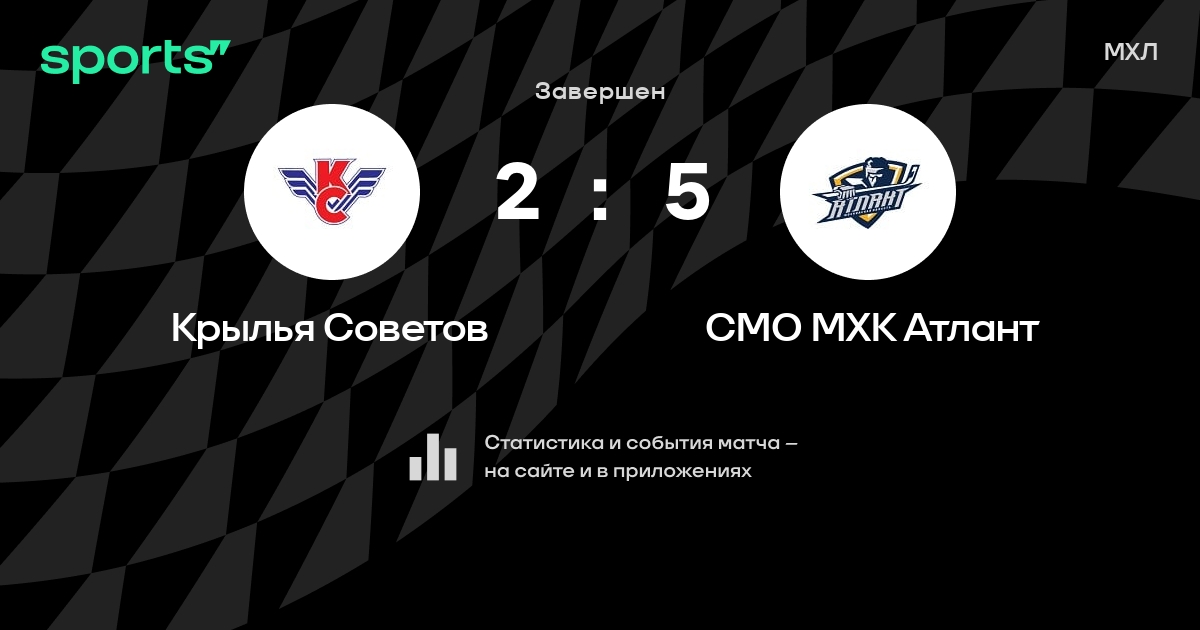 В прошедшем матче в рамках турнира МХЛ состоялась встреча команд Крылья Советов - СМО МХК Атлант со счетом 2 : 5.