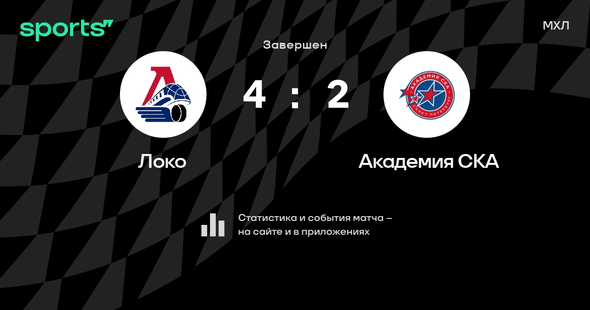 В прошедшем матче в рамках турнира МХЛ состоялась встреча команд Локо - Академия СКА со счетом 4 : 2.