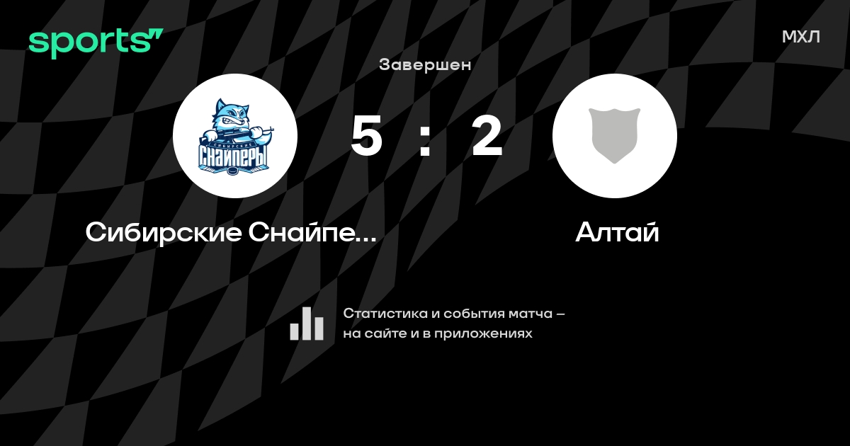 В прошедшем матче в рамках турнира МХЛ состоялась встреча команд Сибирские Снайперы - Алтай со счетом 5 : 2.