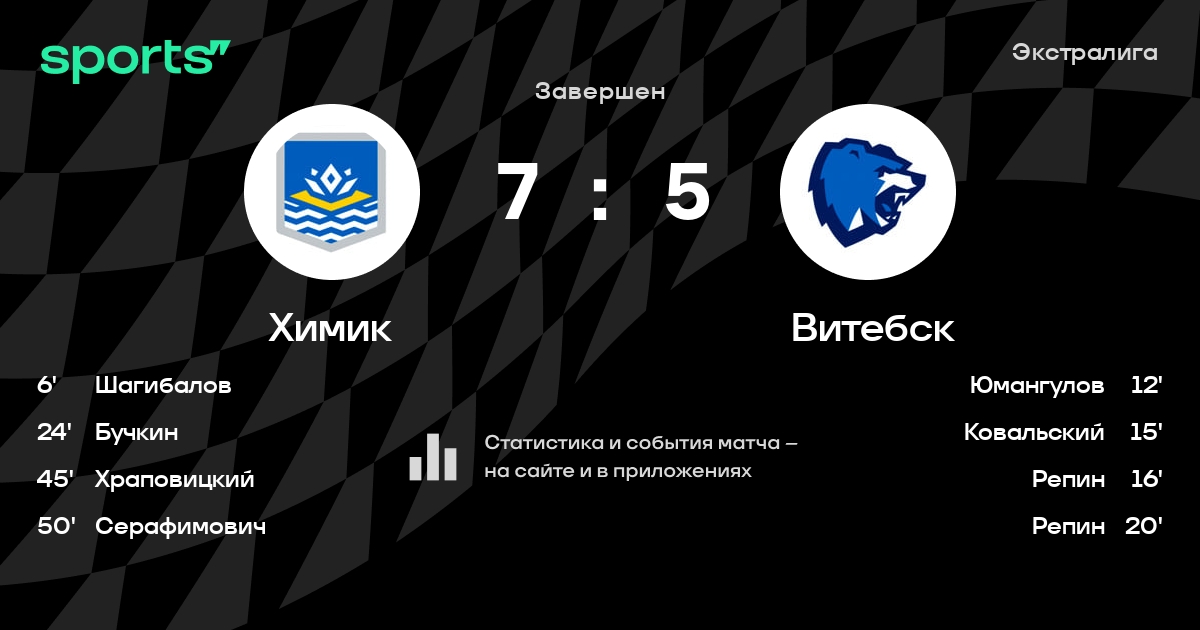 В прошедшем матче в рамках турнира Экстралига состоялась встреча команд Химик - Витебск в городе Витебск (Беларусь) на стадионе Витебский дворец спорта (вместимость - 2000)