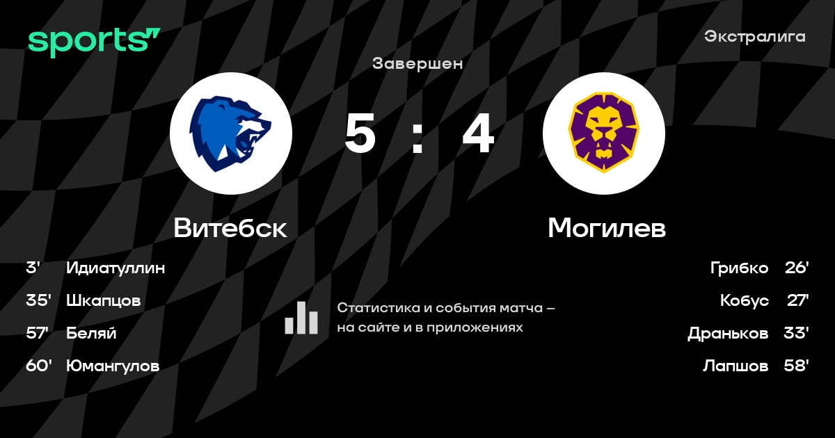 В прошедшем матче в рамках турнира Экстралига состоялась встреча команд Витебск - Могилев в городе Витебск (Беларусь) на стадионе Витебский дворец спорта (вместимость - 2000)