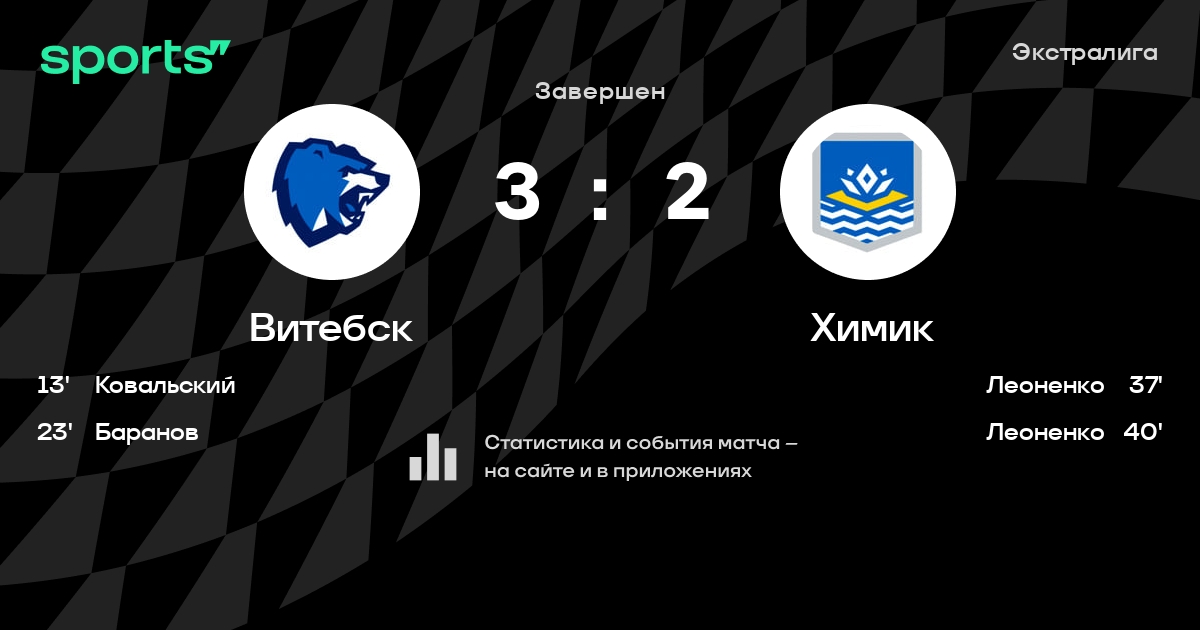 В прошедшем матче в рамках турнира Экстралига состоялась встреча команд Витебск - Химик в городе Витебск (Беларусь) на стадионе Витебский дворец спорта (вместимость - 2000)