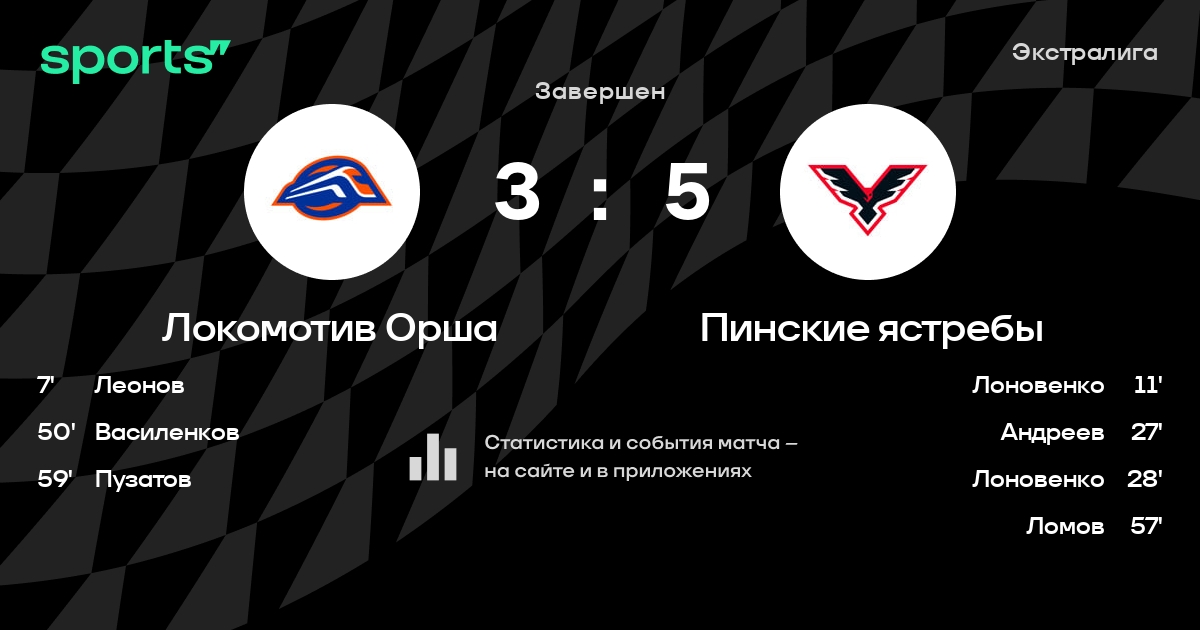 В прошедшем матче в рамках турнира Экстралига состоялась встреча команд Локомотив Орша - Пинские ястребы в городе Орша (Беларусь) на стадионе Ледовая арена Орша (вместимость - 3500)
