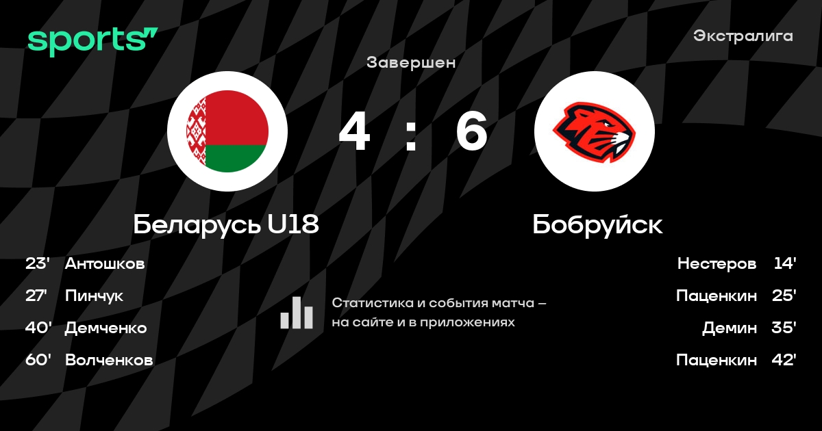 В прошедшем матче в рамках турнира Экстралига состоялась встреча команд Беларусь U18 - Бобруйск в городе Острошицкий Городок (Беларусь) на стадионе Ледовая арена Раубичи (вместимость - 120)