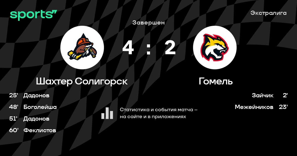 В прошедшем матче в рамках турнира Экстралига состоялась встреча команд Шахтер Солигорск - Гомель в городе Солигорск (Беларусь) на стадионе Ледовый дворец спорта Солигорск (вместимость - 1800)