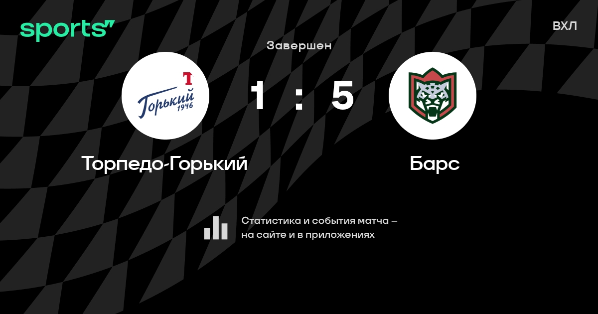 В прошедшем матче в рамках турнира ВХЛ состоялась встреча команд Торпедо-Горький - Барс со счетом 1 : 5.