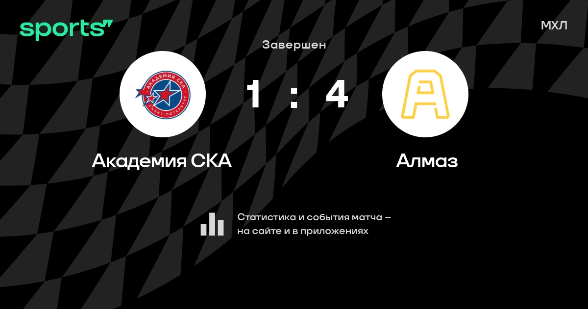 В прошедшем матче в рамках турнира МХЛ состоялась встреча команд Академия СКА - Алмаз со счетом 1 : 4.