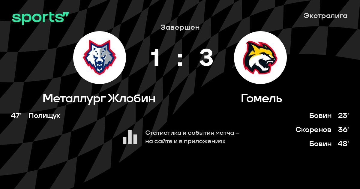 В прошедшем матче в рамках турнира Экстралига состоялась встреча команд Металлург Жлобин - Гомель в городе Жлобин (Беларусь) на стадионе Ледовый дворец Металлург (вместимость - 2018)