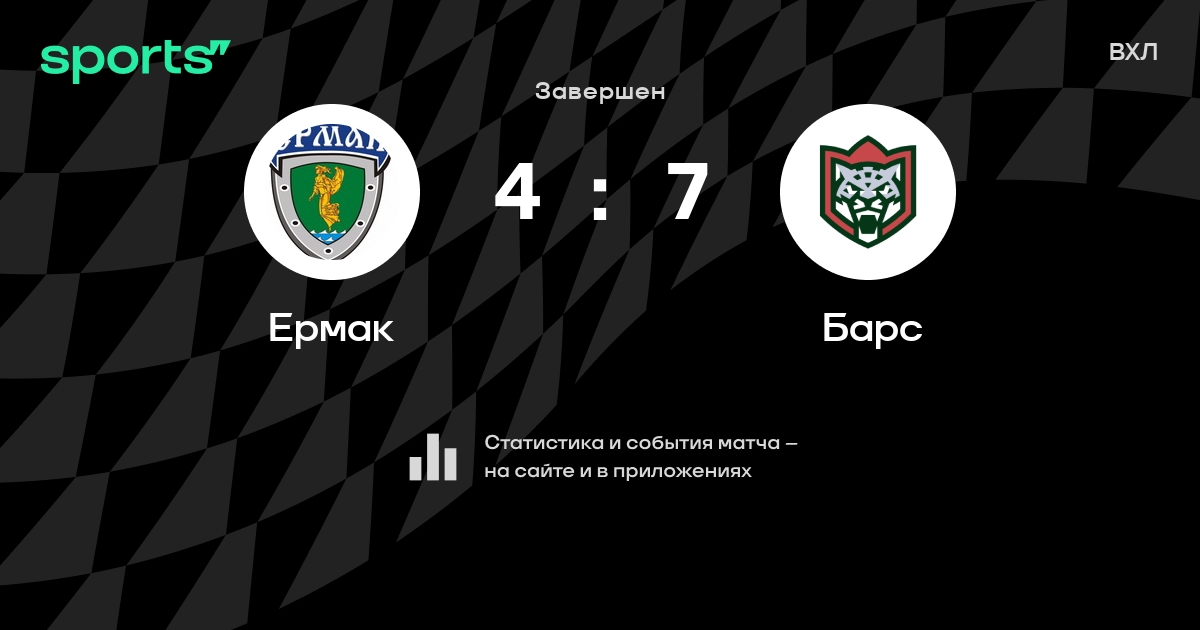 В прошедшем матче в рамках турнира ВХЛ состоялась встреча команд Ермак - Барс со счетом 4 : 7.