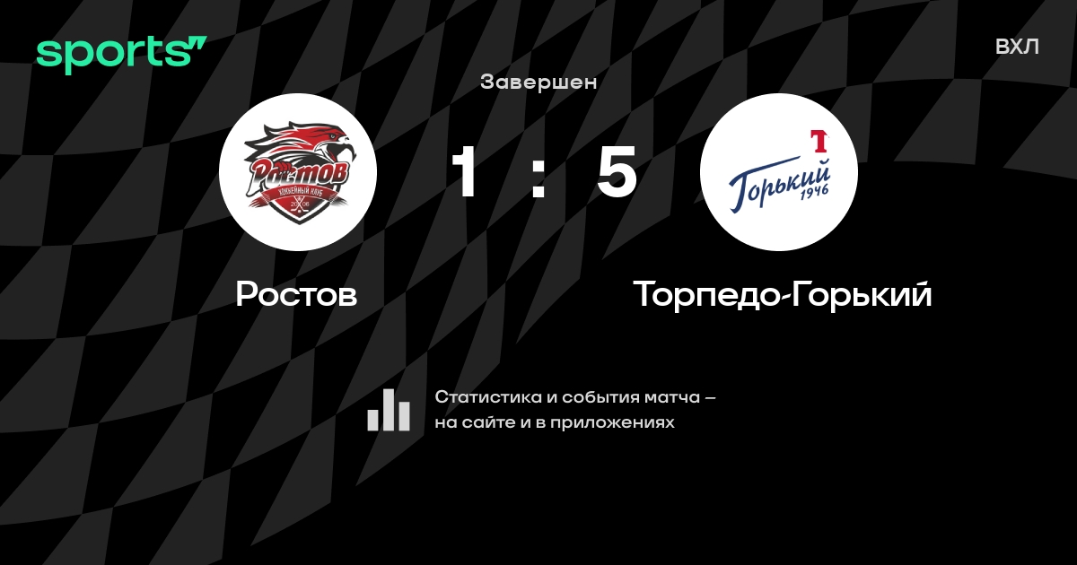 В прошедшем матче в рамках турнира ВХЛ состоялась встреча команд Ростов - Торпедо-Горький со счетом 1 : 5.
