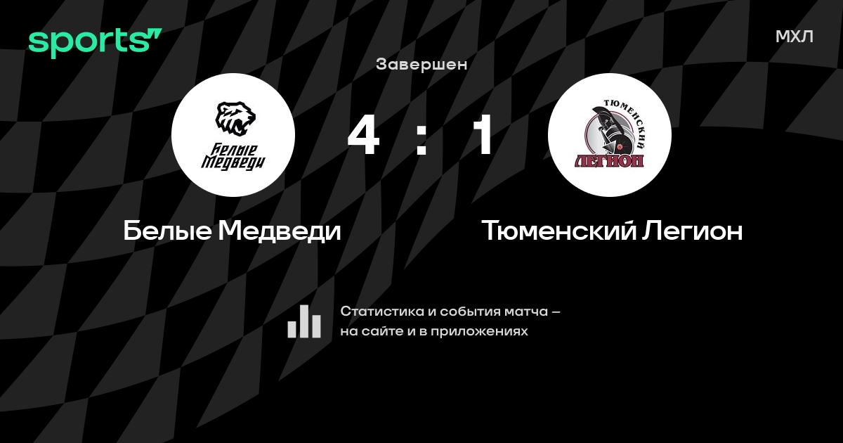 В прошедшем матче в рамках турнира МХЛ состоялась встреча команд Белые Медведи - Тюменский Легион со счетом 4 : 1.