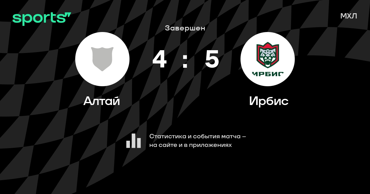 В прошедшем матче в рамках турнира МХЛ состоялась встреча команд Алтай - Ирбис со счетом 4 : 5.