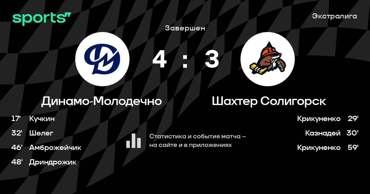 В прошедшем матче в рамках турнира Экстралига состоялась встреча команд Динамо-Молодечно - Шахтер Солигорск в городе Молодечно (Беларусь) на стадионе Ледовый дворец Молодечно (вместимость - 2000)