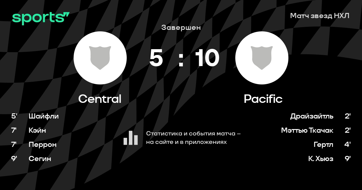 В прошедшем матче в рамках турнира Матч звезд НХЛ состоялась встреча команд Central - Pacific в городе Сент-Луис (США) на стадионе Enterprise Center (вместимость - 19250)