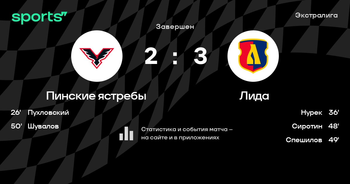 В прошедшем матче в рамках турнира Экстралига состоялась встреча команд Пинские ястребы - Лида в городе Пинск (Беларусь) на стадионе Ледовый дворец спорта Пинск (вместимость - 598)