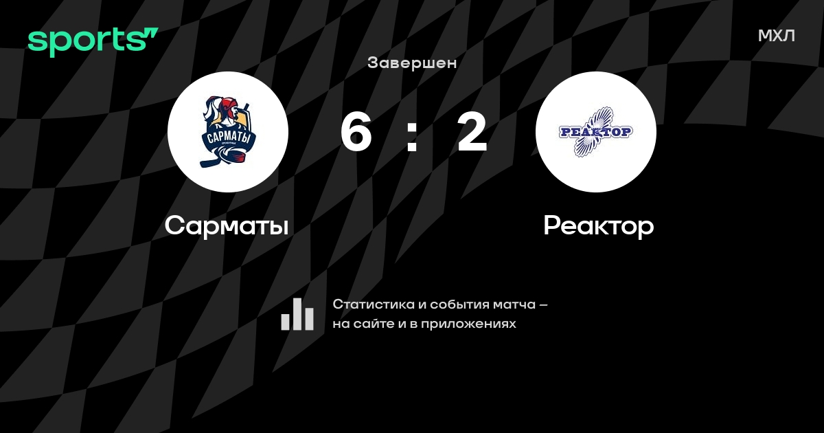В прошедшем матче в рамках турнира МХЛ состоялась встреча команд Сарматы - Реактор со счетом 6 : 2.