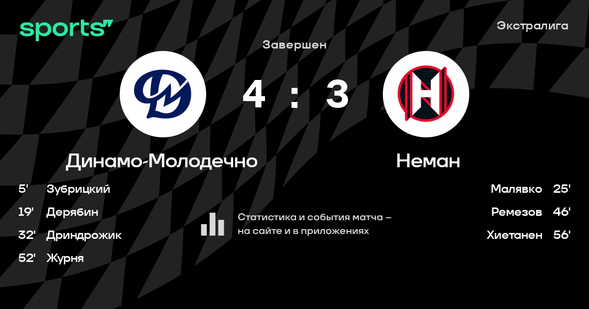 В прошедшем матче в рамках турнира Экстралига состоялась встреча команд Динамо-Молодечно - Неман в городе Молодечно (Беларусь) на стадионе Ледовый дворец Молодечно (вместимость - 2000)
