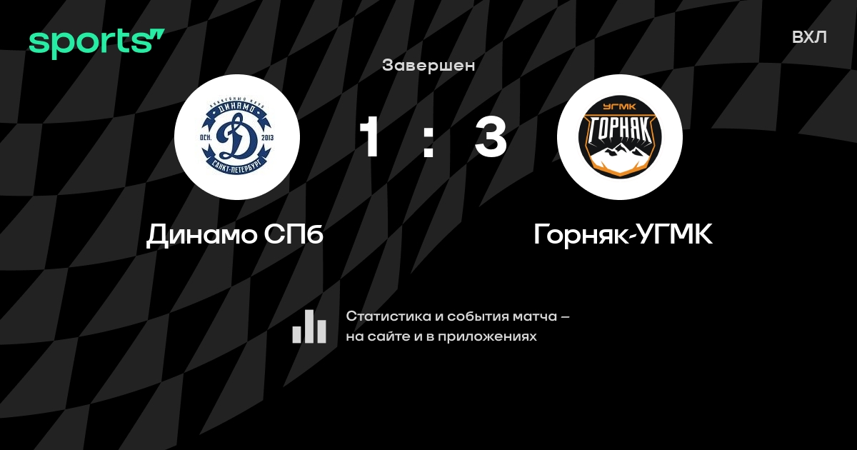 В прошедшем матче в рамках турнира ВХЛ состоялась встреча команд Динамо СПб - Горняк-УГМК со счетом 1 : 3.