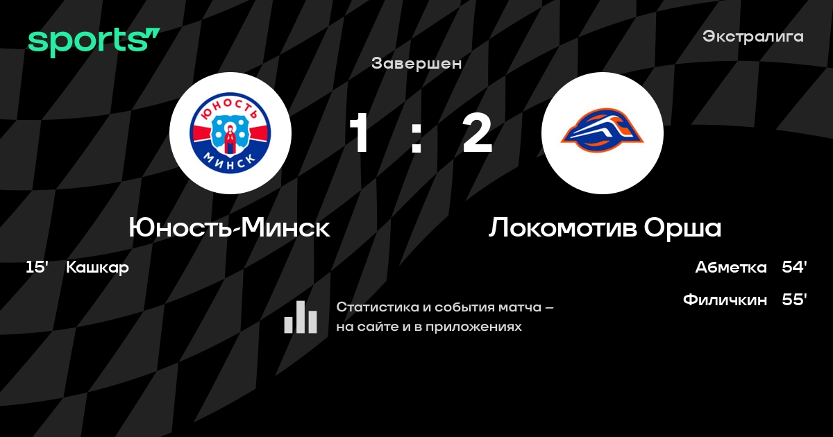 В прошедшем матче в рамках турнира Экстралига состоялась встреча команд Юность-Минск - Локомотив Орша в городе Минск (Беларусь) на стадионе Чижовка-Арена (вместимость - 9487)