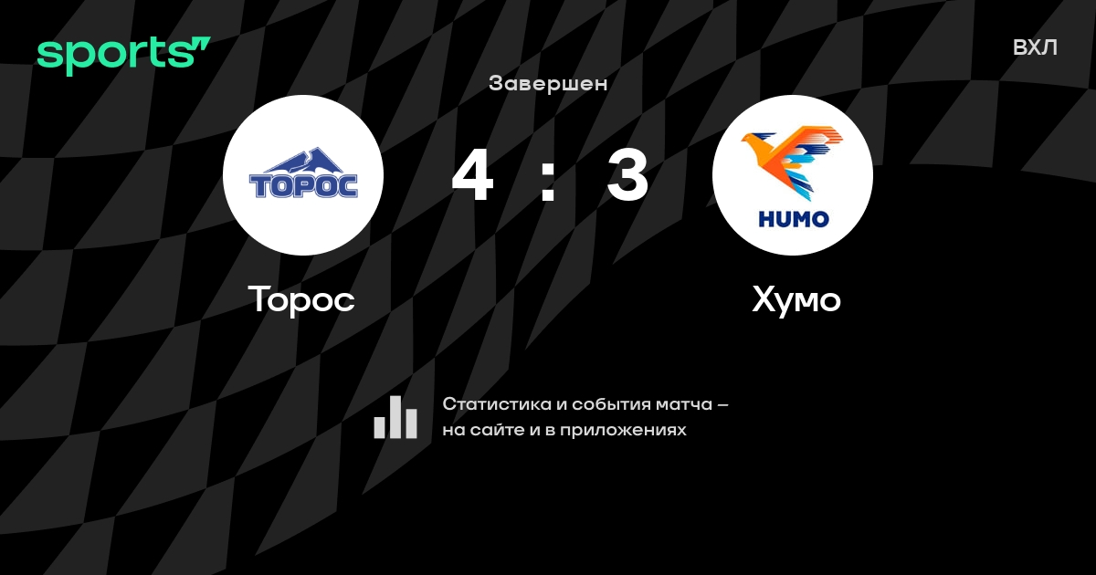 В прошедшем матче в рамках турнира ВХЛ состоялась встреча команд Торос - Хумо со счетом 4 : 3.