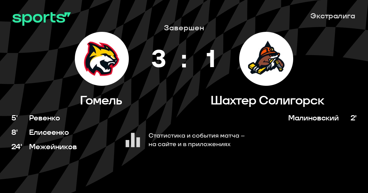В прошедшем матче в рамках турнира Экстралига состоялась встреча команд Гомель - Шахтер Солигорск в городе Гомель (Беларусь) на стадионе Ледовый дворец Гомель (вместимость - 2700)