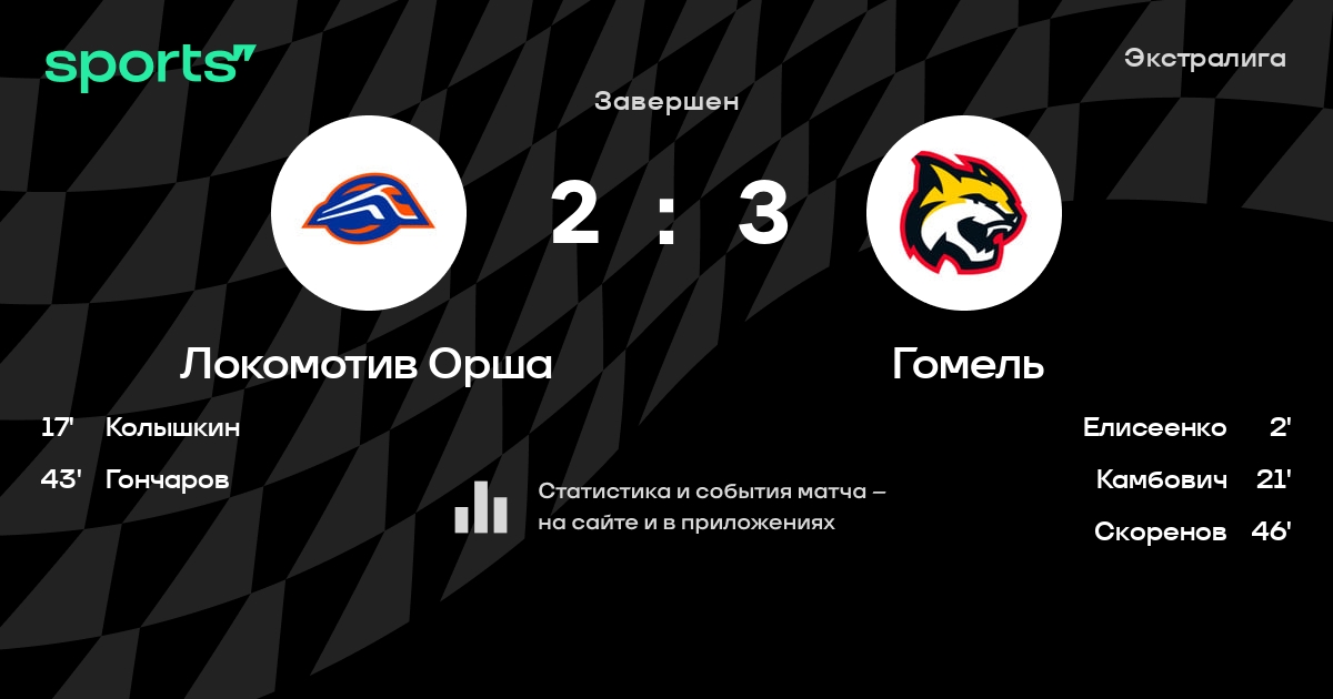 В прошедшем матче в рамках турнира Экстралига состоялась встреча команд Локомотив Орша - Гомель в городе Орша (Беларусь) на стадионе Ледовая арена Орша (вместимость - 3500)