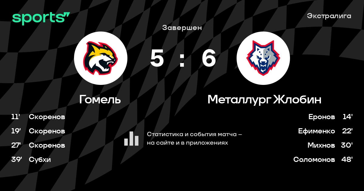 В прошедшем матче в рамках турнира Экстралига состоялась встреча команд Гомель - Металлург Жлобин в городе Гомель (Беларусь) на стадионе Ледовый дворец Гомель (вместимость - 2700)