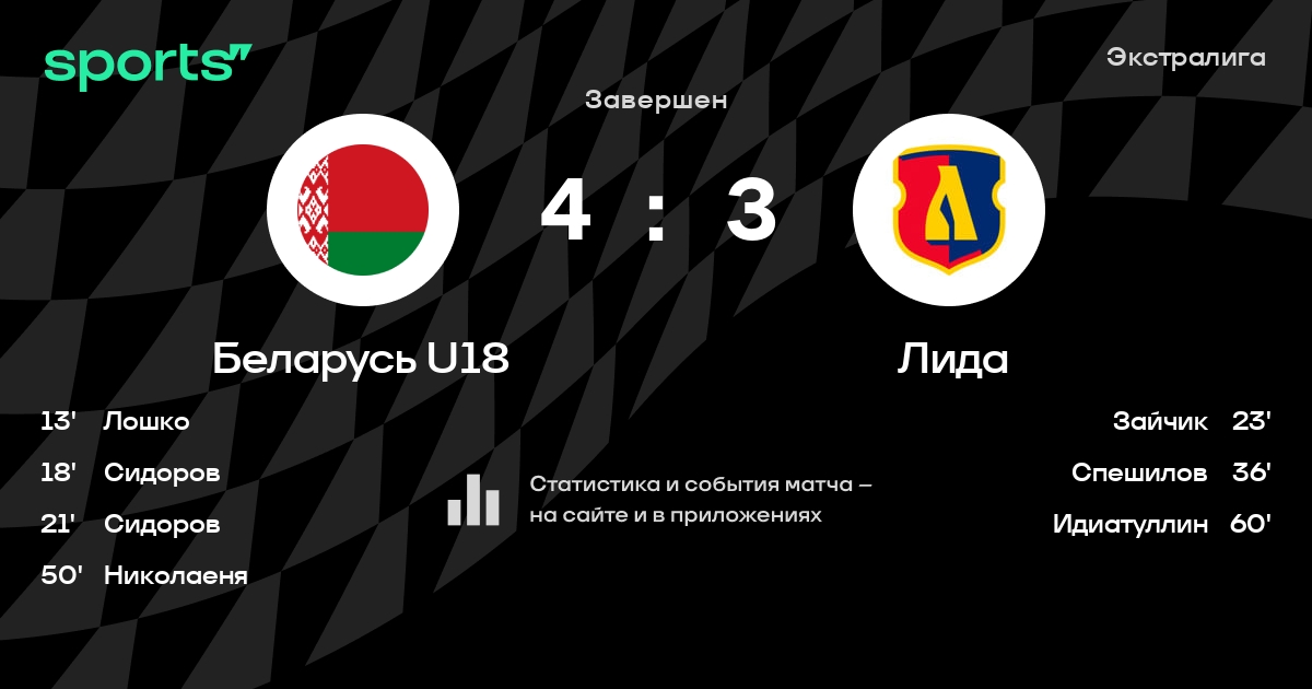 В прошедшем матче в рамках турнира Экстралига состоялась встреча команд Беларусь U18 - Лида в городе Острошицкий Городок (Беларусь) на стадионе Ледовая арена Раубичи (вместимость - 120)