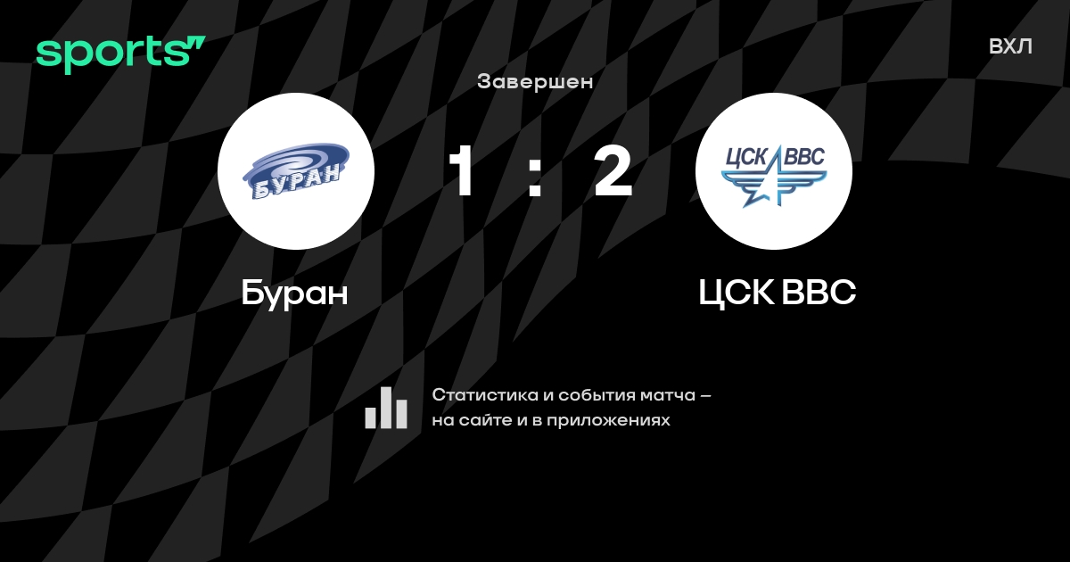 В прошедшем матче в рамках турнира ВХЛ состоялась встреча команд Буран - ЦСК ВВС со счетом 1 : 2.