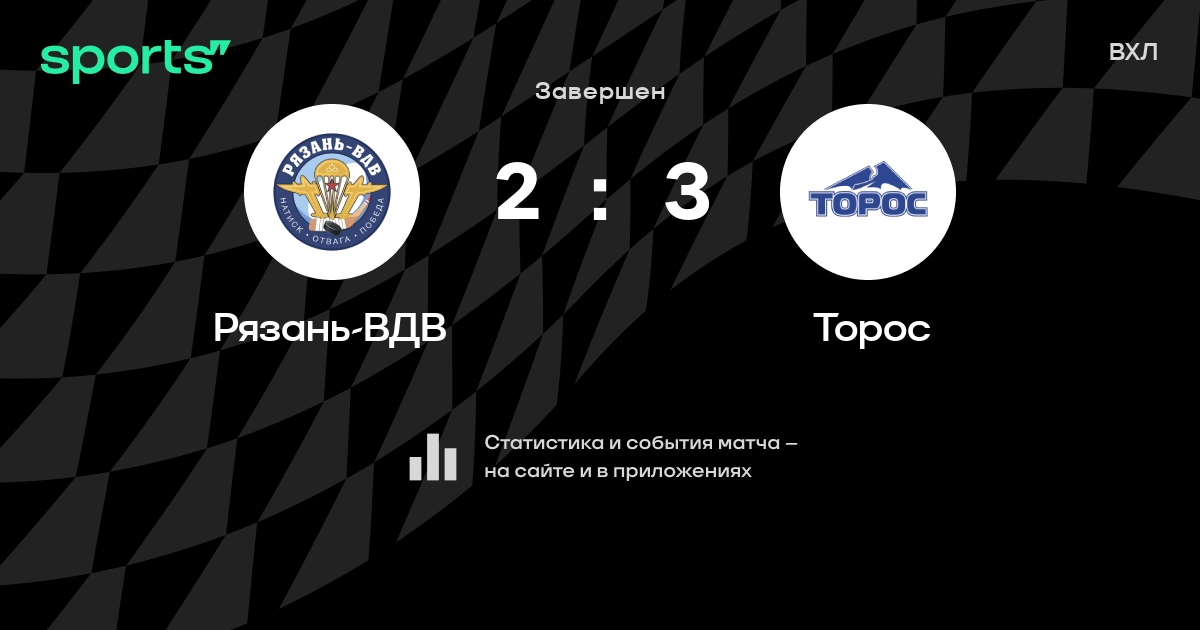 В прошедшем матче в рамках турнира ВХЛ состоялась встреча команд Рязань-ВДВ - Торос со счетом 2 : 3.