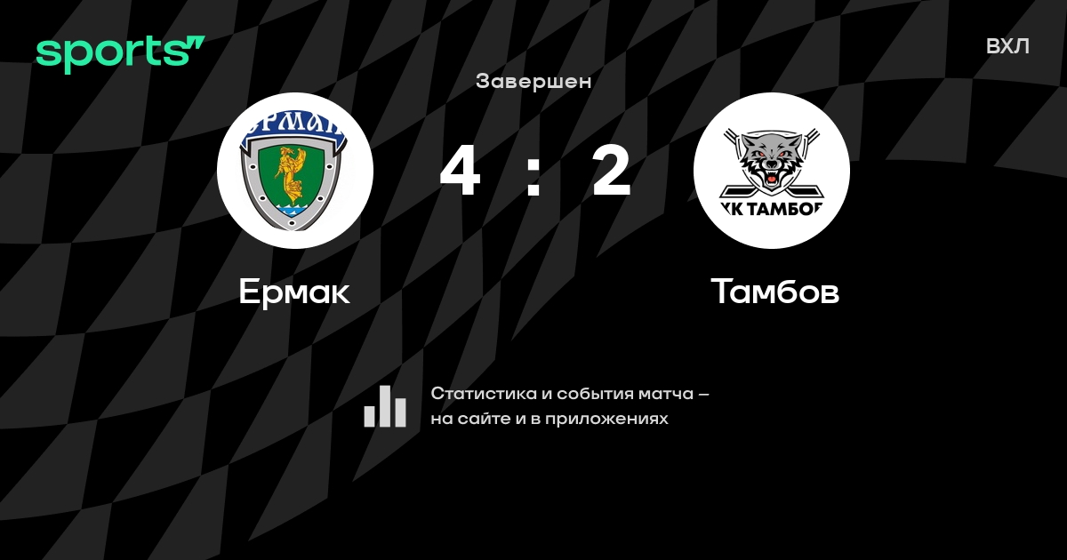 В прошедшем матче в рамках турнира ВХЛ состоялась встреча команд Ермак - Тамбов со счетом 4 : 2.
