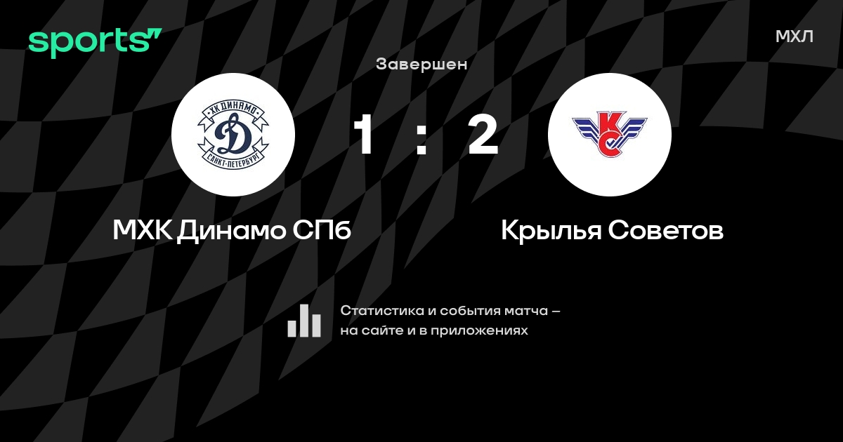 В прошедшем матче в рамках турнира МХЛ состоялась встреча команд МХК Динамо СПб - Крылья Советов со счетом 1 : 2.