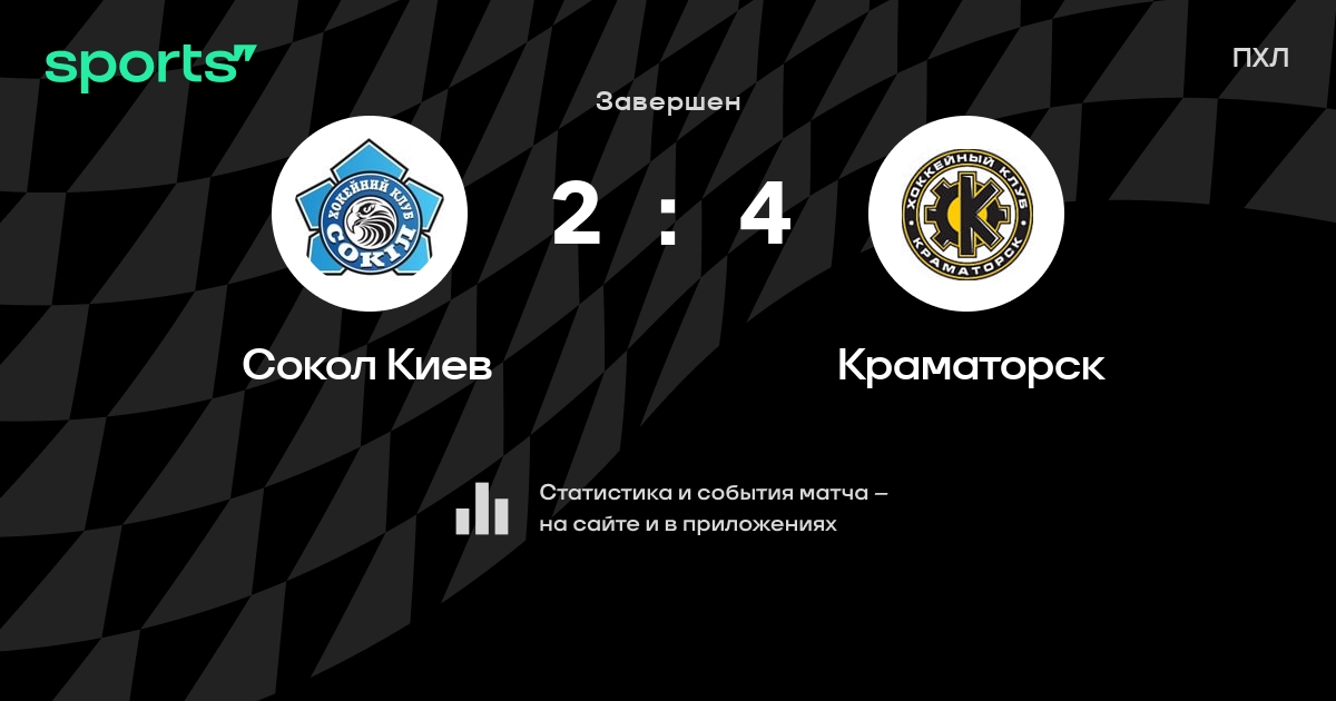 В прошедшем матче в рамках турнира ПХЛ состоялась встреча команд Сокол Киев - Краматорск со счетом 2 : 4.